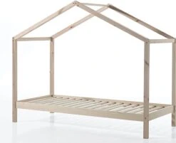 Lit Cabane Enfant 90×190 Cm Avec Tiroirs – Bois Pin Massif – Naturel Et Noir – Sommier Inclus