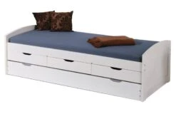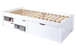 Lit Banquette 2 Tiroirs Pin Massif Vernis Blanc Linan 90×200 Cm
