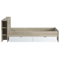 Lit 90×200 Avec 2 Tiroirs – DĂ©cor Chene Et Blanc – L 99,2 X P 223,7 X H 90 Cm – AUSTIN
