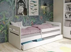 Lit Enfant Avec Barrière De Sécurité Amovible Blanc Et Gris Moly