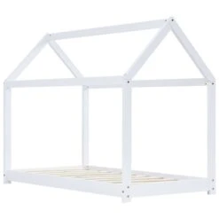 Lit Enfant Cabane Bois Pin Blanc 90×200 Cm Avec BarriĂ©re Et 2 Tiroirs De Rangement Forka