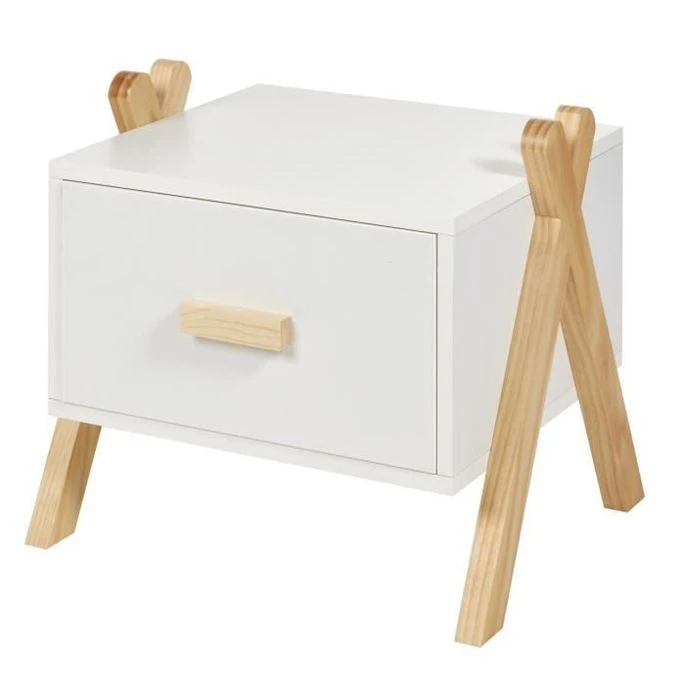 AMAROK Chevet Enfant – Pin Massif Et MDF – Blanc/naturel – Style Scandinave – L 46 Cm