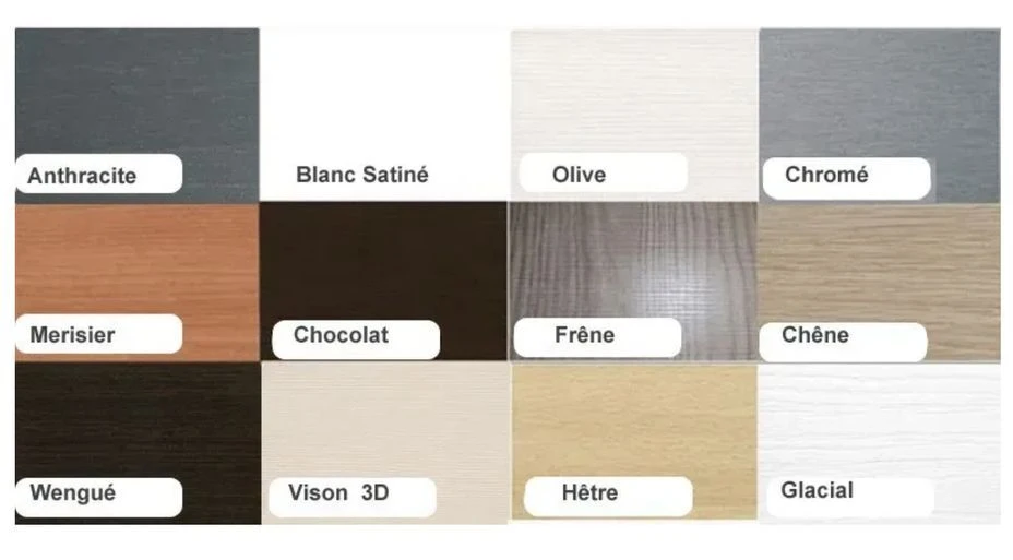 MatĂ©riau : panneaux de particules mĂ©laminĂ©s haute densitĂ© avec des finitions extĂ©rieures de 35 mm et des finitions intĂ©rieures de 19 mm.