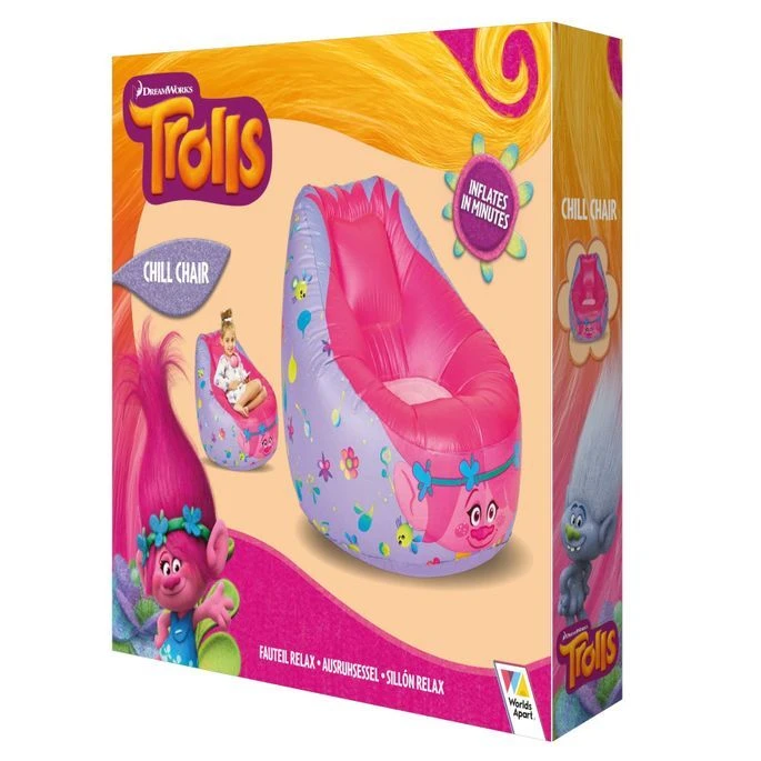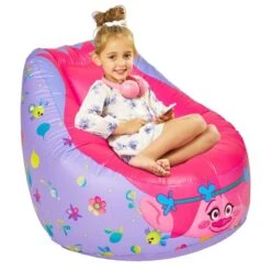 Idéal pour lire confortablement ou jouer avec sa console, craquez pour le pouf Trolls gonflable.