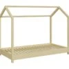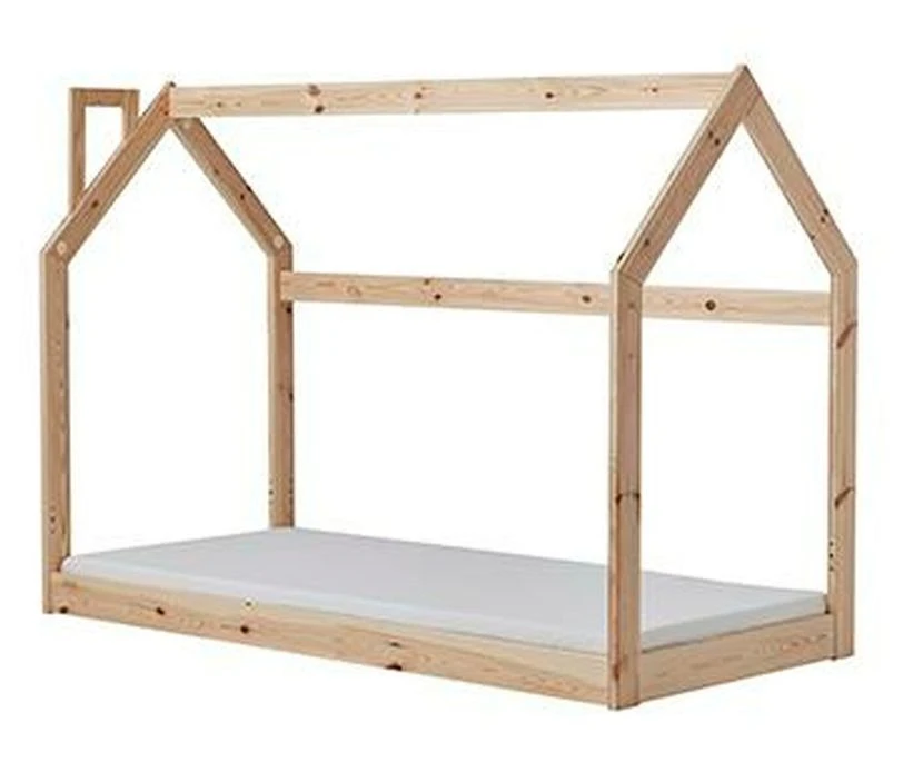 Il est entièrement fait en pin massif, et vous pouvez le monter de façon à avoir le couchage au sol ou plus haut en mettant ses pieds en place.