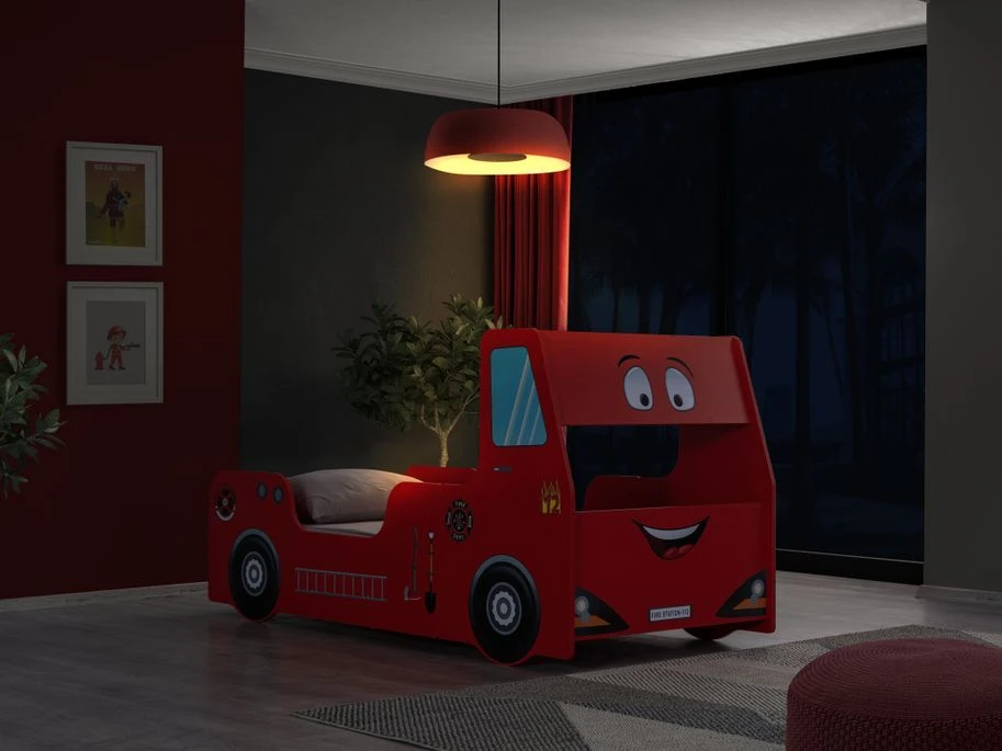 Le lit voiture enfant est doté de phares éclairés par Leds : un éclairage magnifique sans dégagement de chaleur, en très basse tension et avec un transformateur externe : tout est sécurisé !