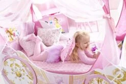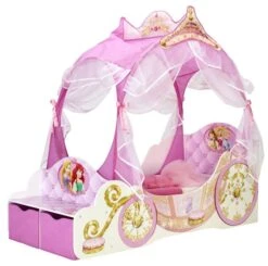 Le lit carrosse dispose de deux tiroirs de rangements au pied du pied du lit pour ranger toutes les petites affaires comme les jouets, ou des draps.