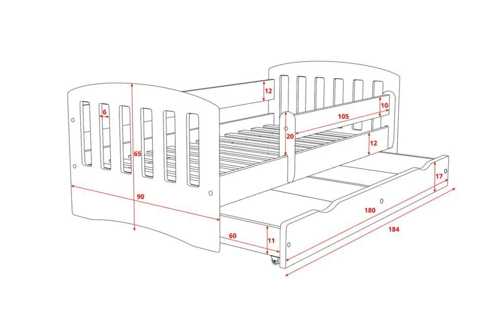 Un spacieux tiroir à deux compartiments sur roulettes vous permettra de ranger literie, couvertures ou autres accessoires jeunesse, en prenant soin de l’utilisation optimale de l’espace dans la salle des jeunes.