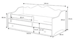 L’ensemble comprend Ă©galement un sommier en bois de bouleau durable, composĂ© de lattes rigides, un matelas en mousse d’une Ă©paisseur de 8 cm et d’une barrière amovible de sĂ©curitĂ©.