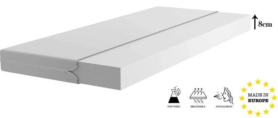 Matelas en option : Matelas en mousse : mousse de polyuréthane de haute qualité de 8 cm d’épaisseur, housse amovible en tissu avec fermeture éclair