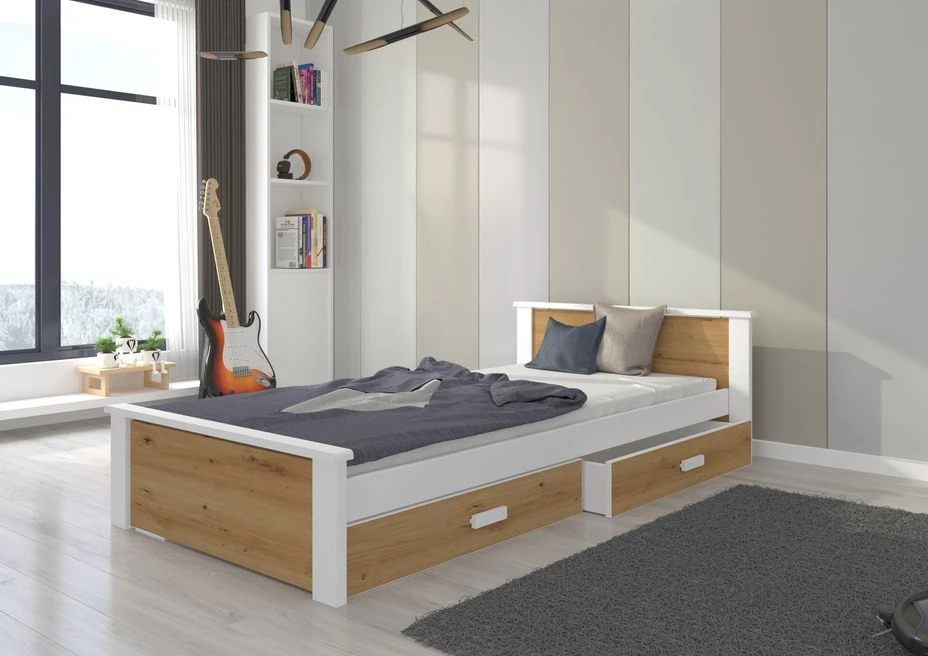 Fabriqué avec soin en bois de pin vernis blanc mat et bois artisan robuste et esthétique.nous utilisons des vernis écologiques, peints au pistolet, pour protéger le lit. Grâce à trois couches de vernis appliquées avec précision, notre lit garantit une résistance exceptionnelle aux dommages mécaniques et à divers types de salissures.
