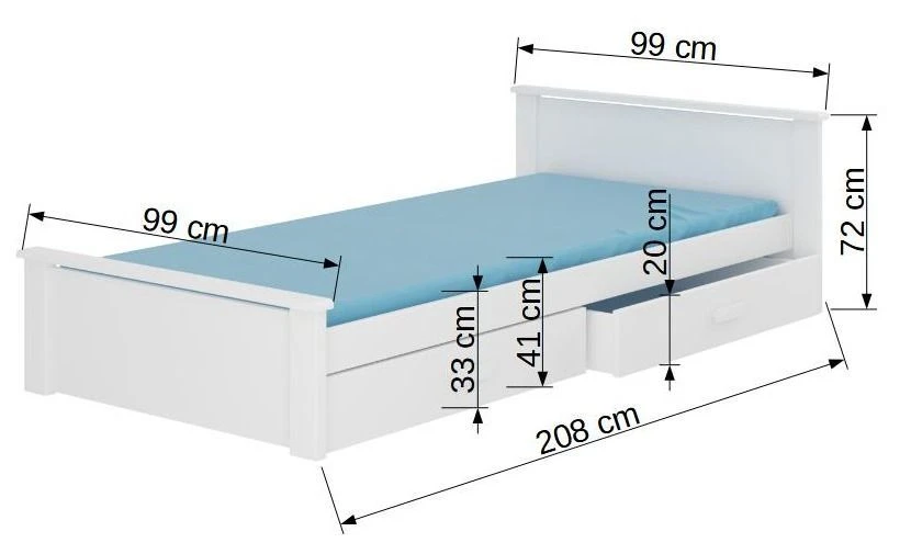 Le lit dispose de deux coffres de rangement pratiques de L 95 x P 80 x H 14 cm chacun.