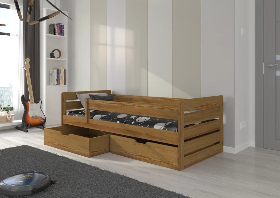 Fabriqué avec soin en bois de pin vernis oak mat robuste et esthétique.nous utilisons des vernis écologiques, peints au pistolet, pour protéger le lit. Grâce à trois couches de vernis appliquées avec précision, notre lit garantit une résistance exceptionnelle aux dommages mécaniques et à divers types de salissures.