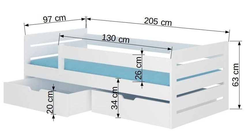 Le lit dispose de deux coffres de rangement pratiques de L 95 x P 80 x H 20 cm chacun.