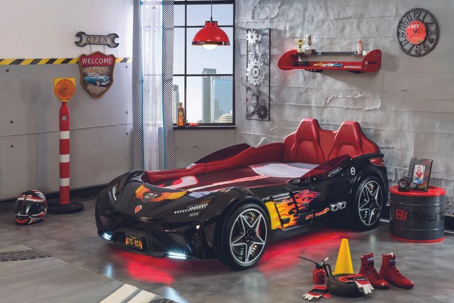Créez une chambre à thème passionnante pour votre enfant avec ce lit de voiture de sport GTE. En plus du lit, vous trouverez sur notre site des bureaux, des armoires, des tapis, des lampes et du linge de lit inspirés du monde automobile pour compléter la décoration de la chambre. Offrez à votre enfant une expérience de sommeil unique et stimulante avec ce lit ludique.