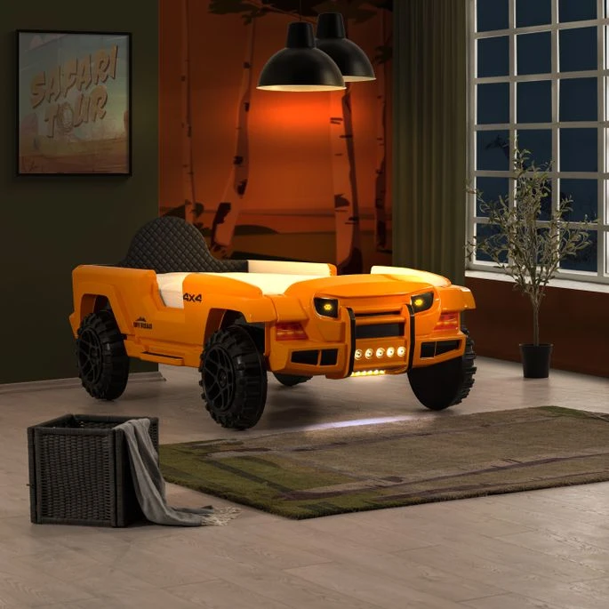 Donnez Ă votre enfant une aventure amusante tous les soirs avec le lit enfant version Jeep orange.