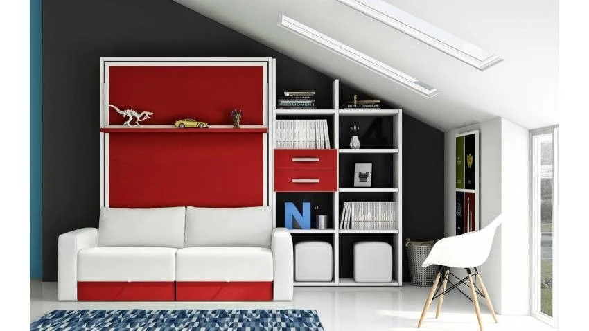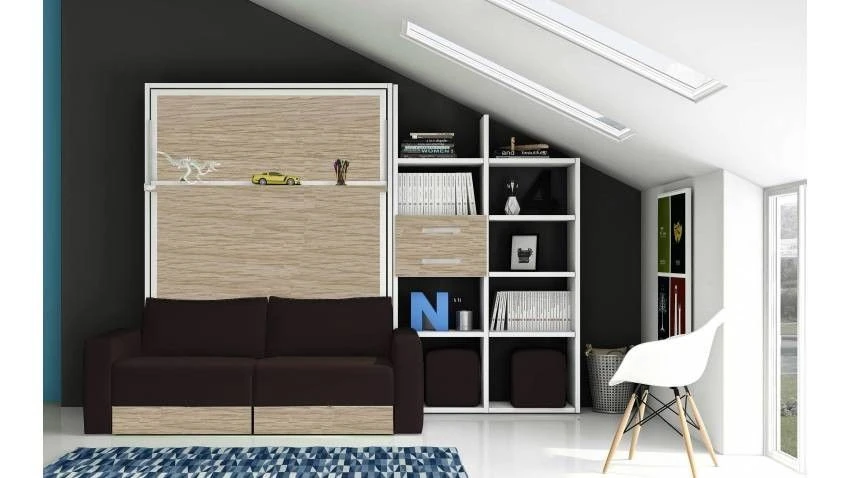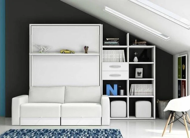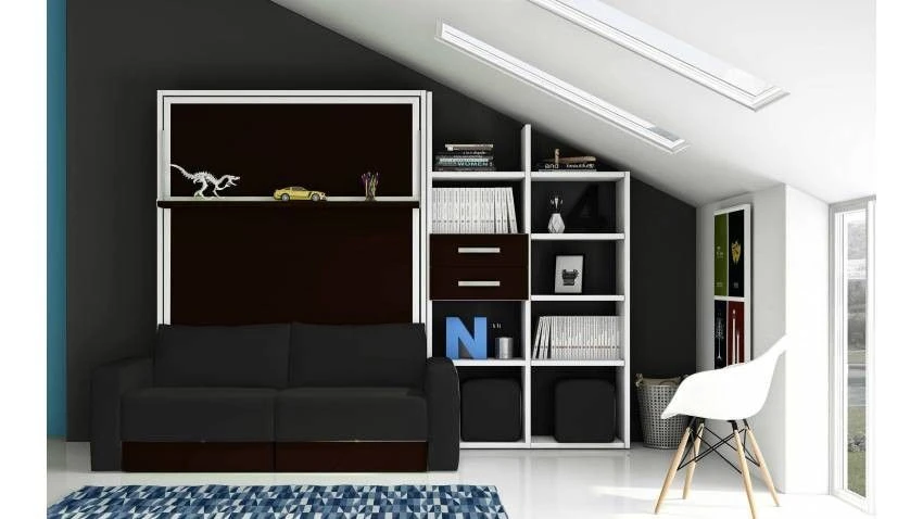 Dossier du canapé amovible, doit être enlevé avant d’ouvrir l’armoire lit.