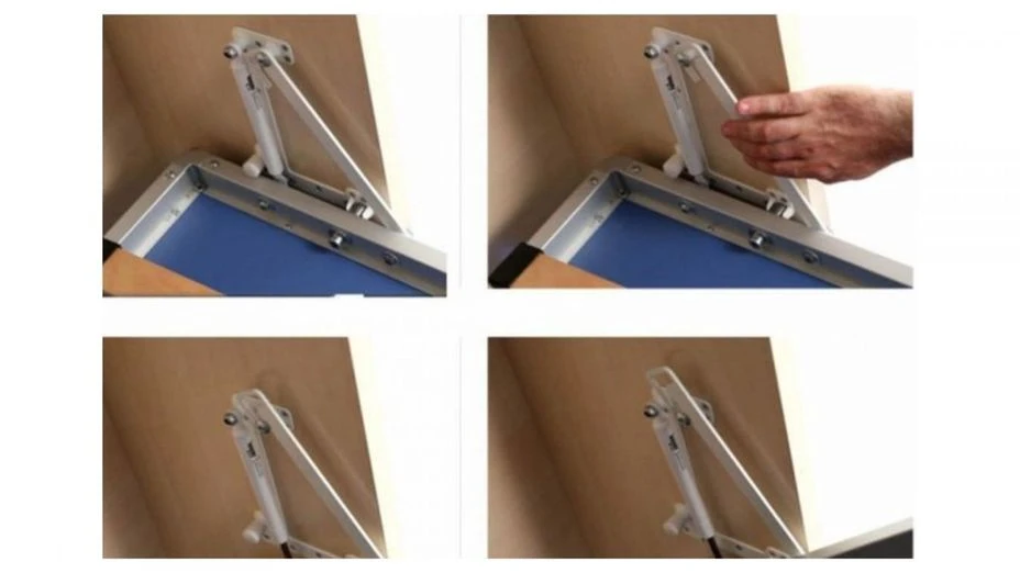 Ouverture de levage au moyen d’un système de guidage actionnĂ© par des ressorts Ă gaz hydrauliques.