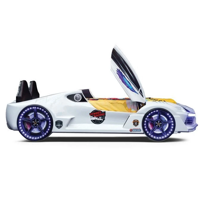 Garniture rembourée simili cuir et spoiler arrière, 3 bruitages différents.