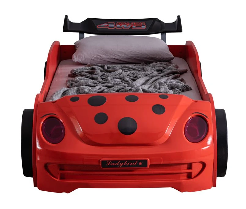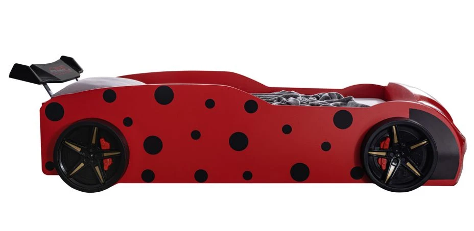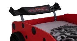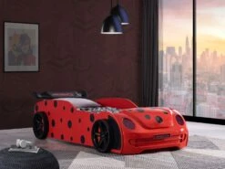 Structure en bois et plastique brillant rouge ABS (le mĂŞme que celui des Legos).