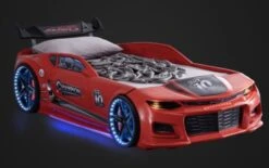 Lit voiture enfant vendu avec notice de montage, sommier, LEDS et boitier d’alimentation.