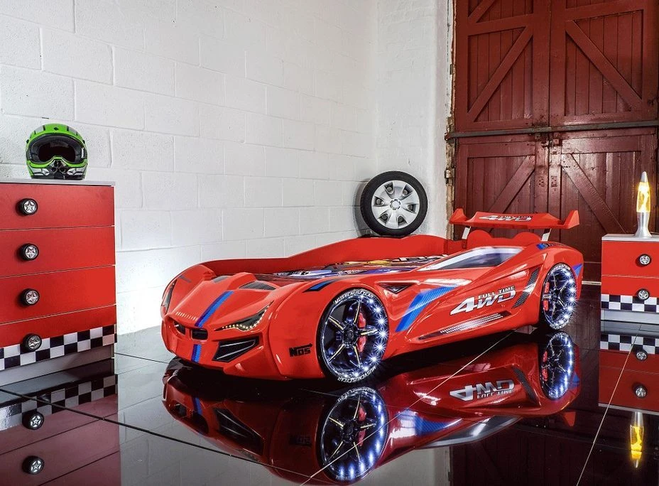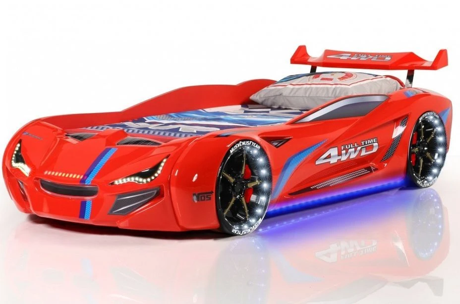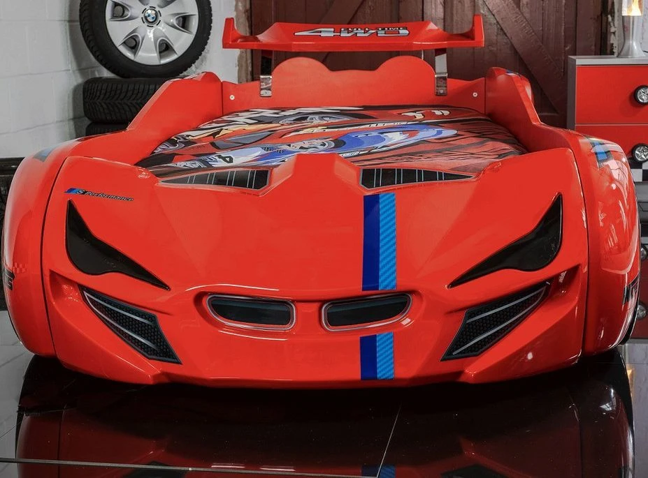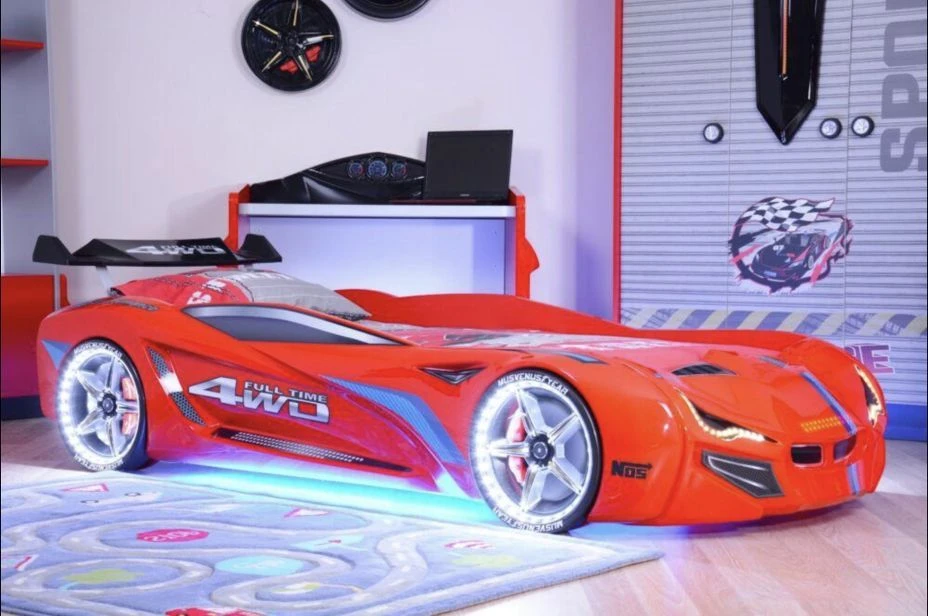 Lit enfant voiture avec un très beau spoiler arrière en plastique brillant!