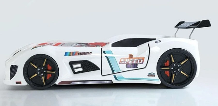 Garniture rembourée simili cuir et spoiler arrière, 3 bruitages différents.