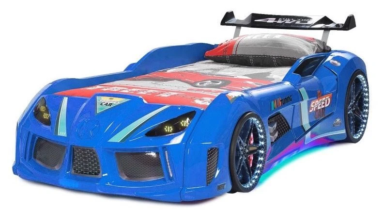 Les 4 roues du lit LED V8 enfant sont munies de rubans LED : pas moins de 17 LEDs par roue : effet garanti !